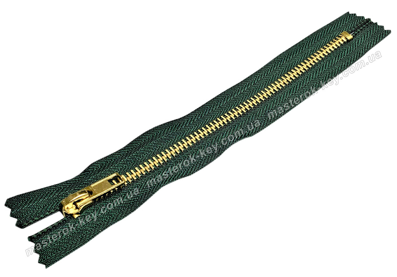 Блискавка джинсова Тип 5 18 см нерознімна колір Темно-зелений 735 зубці золото